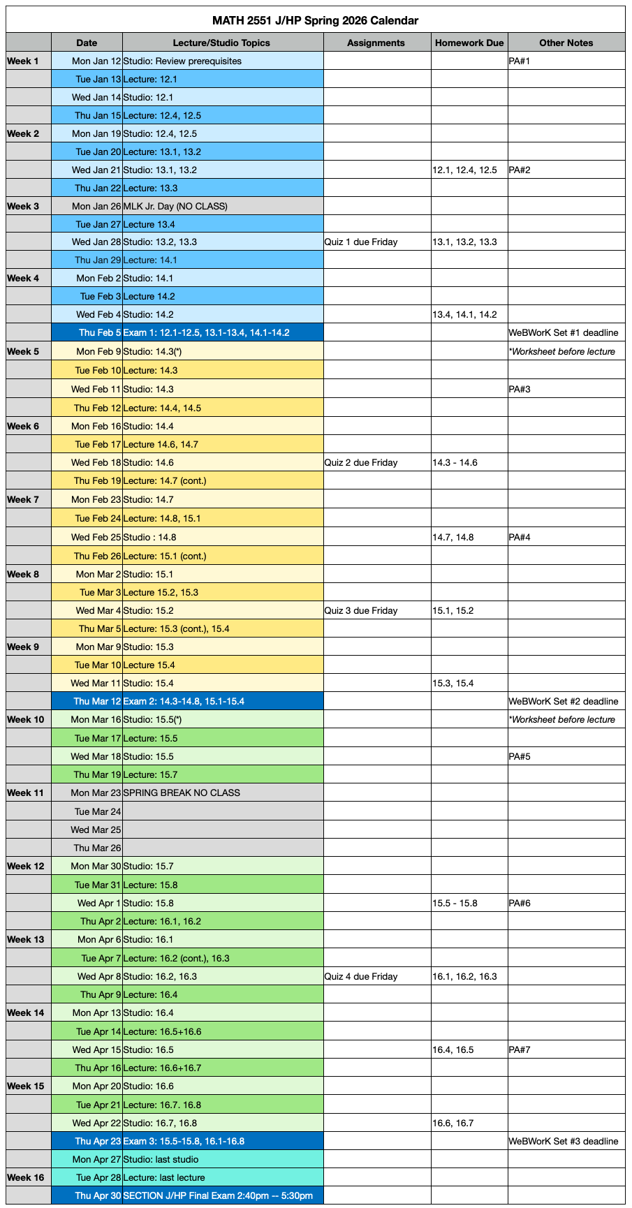 - Mar 23-27 Spring Break (No Class)